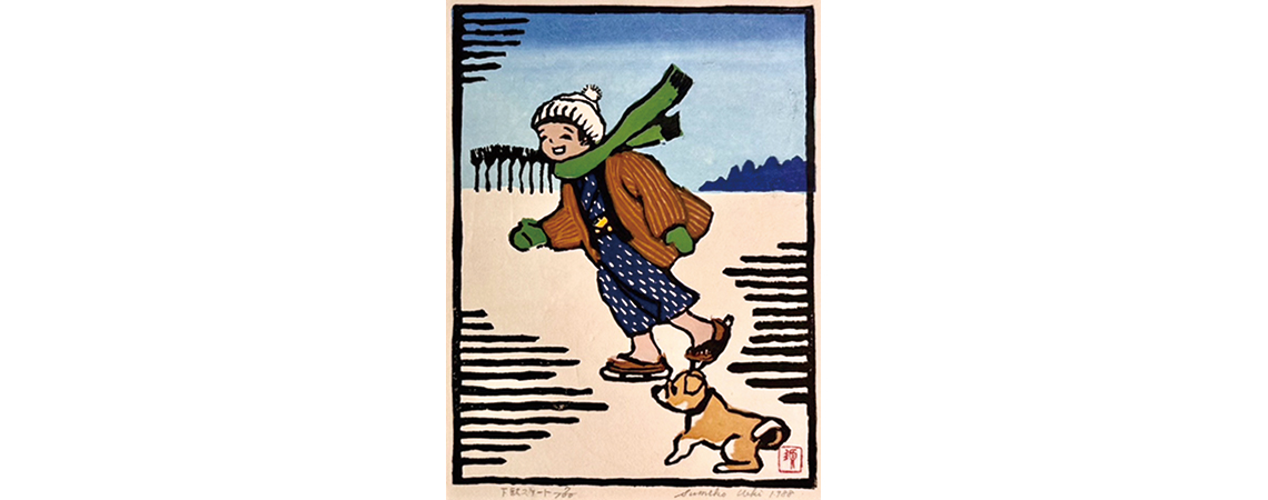 Born in Niigata City in 1921, graduated from Tokyo Prefectural Daigo High School for Girls in 1939. Founded Niigata Women’s Print Association in 1962 and studied under Shinichi Takahashi. Exhibited at the Japan Print Association and Kokuga-kai exhibitions from 1964; won the Niigata Prefectural Art Exhibition Prize in 1970 and 1971; nominated as a member of the Japan Print Association in 1981; unaffiliated since 1984. She visited China in 1985 with the Japan Print Culture Friendship Delegation. She had solo exhibitions such as “Koshi no Uta Sanpo Genga Exhibition,” “Natsukashii Showa no Hajime no Kodomotachi,” “Scandinavia, England Scenery” (Isetan, Niigata), “Shinfurumachi Hanga Dori Genga Exhibition” (Daiwa, Niigata), “Goze sa” (Niigata Masters Gallery), etc. In 1996, she exhibited a bookplate in Lithuania and woodblock prints in France. Passed away in 2022.