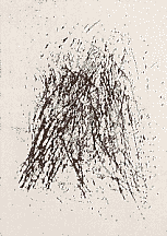 栗田さんの絵が好きで、十数年前から折々小さな絵を求め、家の方々に掛けている。時にほんの数秒、そんな一つにわれ知らず見入っていることがある。言葉にできるようなものは、何も描かれていない。でもそこには無数の言葉や幻影や夢想の萌芽みたいなものが絡まり、とろけあうように動きながら、激しく静止している。まるで火のように。私の目は絵を見ているのではなく、その火にあたっているのだ。気ぜわしい日々のなかの、一瞬の至福である。 (大倉 宏)