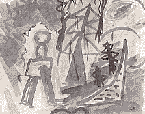 色もいい。きれいな色がこれも純粋にただそこにある、というふう。その独特さを、けれどこれ見よがししない感じが、またいい。その人形のシリーズに、風景と若干の油彩を加えて、新潟での初個展をお願いした。夏の盛り、お盆をはさんだ会期だが、目に涼を求める気分で足をお運びください。 (大倉 宏)