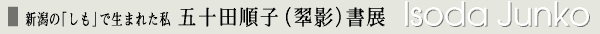 ここで生まれ育った一人の女性が、書家となってそのふるさとを書く。本を見て名文句を書くのではなく、自分のからだからにじんだことばで書く。深く、深く自分を耕して「しも」とは何か、語りかけている。(横山蒼鳳))