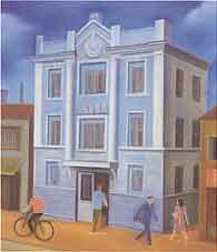 彼女の絵は明るく、かろやかでさわやかですが、それだけではなく、実は美しく妖しく、都会的でありながら下町の雰囲気がただよい、現代的でありながら古風、ドライなのにウェット、相反するものがないまぜになっています。それでいてなぜか、ふわふわと夢の中の世界に誘い込まれてしまう、そんな絵です。新潟の街角や建物、市井の商店、それらが彼女の感性のフィルターを通して描かれるとき、不思議な郷愁をたたえた未知の街「N市」が出現するのです。晩秋の絵屋の中、現実の新潟市に似てちょっと違う、もうひとつの「N市」の散歩を楽しんでみませんか。(村山まみ・越野泉)