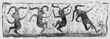 人のような、虫のような、獣のような生き物たちはユーモラスで、陽気で、獰猛そうで、また妙にクールな目をしている。人の心を常食にしているからだろう。チューブのような穴の中を行列する姿で、以前はよく描かれていた。今回の連作もにぎやかそうで、そこはかとなく静かな、孤独の気配を感じる。