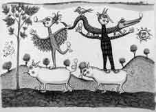笹川周子(ささがわ しゅうこ):版画家。1974年新潟市生まれ。新発田市在住。2001年絵屋で個展開催。