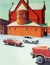 ■1950年兵庫県生まれ。京都薬科大学卒業後、京都市立芸大を出てパリへ遊学。その後はパリと神戸にアトリエを持ち、往復する生活がはじまる。在学中から各種の公募展に入選し、79年からフランスと神戸、京都、大阪と国内の各地で毎年個展を開催。今年も1月から絵屋展ギリギリまでパリ在住とのこと。日本では神戸市灘区で暮らす。
