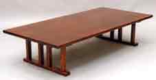 川口清樹(かわぐち せいき) ■1952年富山県生まれ。78年岐阜県飛騨で木の仕事を始める。81年長野県に工房を開く。82年『木の燈展』(鎌倉)で初個展。東京、岡山、長野などで展示会多数。摺り漆で仕上げられた重厚な作品作りで高い評価を受けている。長野県戸隠村在住。 ←「楢拭漆座卓」 150×70×33cm