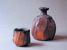 ■1957年兵庫県生まれ。武蔵野美術大学卒業。85年備前陶苑に入社。89・90・91年一水会陶芸展入選、91・97年焼き締め陶公募展入選、93・94・95年陶芸ビエンナーレ入選、93年日本陶芸展入選、91・92年田部美術館茶の湯造形展優秀賞、91・93・94・95・97年同展入選。98・99・2000・2001年備前焼ギャラリー青山(東京)で個展。岡山県備前市在住。 ←「花器」 19×13.7cm ● 「徳利」 9.5×11cm 「ぐい呑」 6×6cm