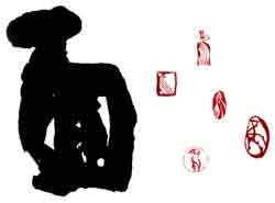 華雪(かせつ) ■1975年京都府生まれ。幼少より書と篆刻に親しむ。立命館大学で心理学を専攻。日本書展等に出品後、92年よりギャラリーアンフェール(京都)、hokari fineart gallery(東京)、graf gm(大阪)等での個展を主に発表。97、98年フランス・トゥールーズで書のライブパフォーマンスを行う。著書(作品集)に『静物画−篆刻ノート』『石の遊び』(平凡社)ほか。現在、京都精華大学公開講座GARDENにて「文字表現講座」講師を勤める。京都市在住。 華雪さんのHP |