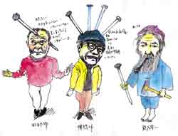 | 何を隠そう初めて買った絵は古山さんの作品であった。ここ10数年お会いしていなくて絵本作家としての作品を遠くから見ていたのだけれど、以前からぜひほしいと思っていた作品群が、今回のカリカチュアである。古楽ユニット音楽三昧のコンサートチラシに掲載されていた作曲家のシリーズがある。バッハやモーツァルトやモンテヴェルディがなにやらつぶやいているのだけれど、大笑いするのではなく、くすっという感じ、にやっとする感じ。絶対に言いそうにないことをこの人ならこんなこと言うかもしれないと思わせる。うまいなあと思う。予め見せていただいた画家たちは、やっぱり、くすっとしたり、にやっとしたり。今回のメインは多重人格者ものだとか。絵屋での古山ワールド、楽しみである。(中山佳奈恵) | ||