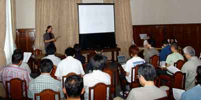 「新潟まち遺産の会」発足会 6月26日、新潟市歴史博物館の旧第四銀行住吉町支店の二階会議室で「新潟まち遺産の会」の発足会が開かれました。 同会は絵屋の裏にかつてあった「東厩島町の町屋」の移築支援活動を機に2002年4月に発足した「新潟の町屋を生かす会」の活動を引き継ぎ、より広い視点で新潟に残る建造物を中心とした歴史的遺産の継承と活用を、市民の立場で支援することを目的に発足したものです(初代の世話人代表を絵屋代表でもある大倉がつとめます)。発足会の最後に同会副代表でもある岡崎篤行さん(新潟大学助教授)が映像を交え、新潟にのこるさまざまな「まち遺産」を紹介。改めて新潟の歴史の奥行きを実感しました。 会では再建の目処のたっていない町屋の解体部材の有効活用を模索していくとともに、新潟の「まち遺産」の価値を広く訴える活動を展開していく予定で、第1弾として、来春までに町屋を活用した新潟の店舗マップを作成予定とのこと。 なお同会は正会員(年会費3000円)と賛助会員(同1000円)を募集しています。入会希望の方は下記までご連絡下さい。 ●新潟まち遺産の会 (事務所 伊藤純一アトリエ内) TEL025-228-2536