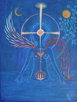 アンティエ・グメルス(Antje Gummels) ←「水」、オイルパステル、テンペラ、紙、 |