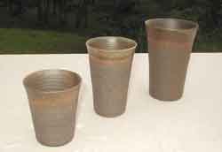 ←「焼きしめ ビヤマグ」 小:直径8cm×9.5cm 中:直径8cm×12.5cm 大:直径10cm×15cm