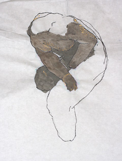 ←「象る/トルソ」 2008年 水彩、石、ペン、鉛筆、紙 33×25cm