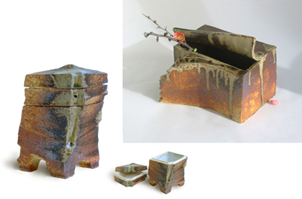 「紀のかたち」三段方形 灰釉香炉