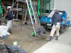 | 基礎工事の乗り込み。雪の心配も無さそうなのでこの分だと基礎工事も順調に進むことだろう。工場では運搬した材料を洗いながら釘を抜いたり埋木をしたりの作業もはじめた。一応、今のところの予定では2/17(土)大安を移築上棟の日としたい。拙文ではあるがこんな感じで完成まで経過報告させていただけたらと思っているので宜しくお願いいたします。 |