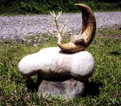 藤田陽子は、轆轤で作品を作ることを少し控えめにしていつからだったろうか? 白い雲の中に足を踏み入れて陶土で雲の作品を作り始めました。雲の下は、雨だったり、雪、霰だったり、風が吹いていたり、雷まで鳴っています。不思議なことに雲の上は、茫漠と淡い空が無限に広がり、日の光に溢れ、風が、そよぎ大きな神木が、一本すくっと立って大抵、一、二軒の小さな家が、あって、夜になると星が、輝いて月が、雲の上にポコっと乗っかっていたりしています。