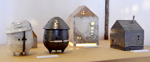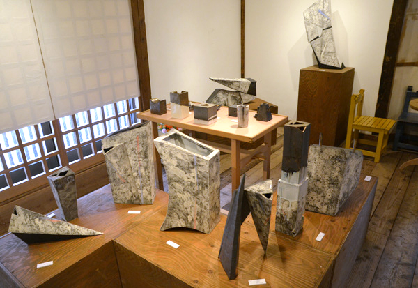 真島さんはまた、土の立体造形作家でもある。日展、日本現代工芸展への出品を続け、今年、現代工芸賞を受けて日本現代工芸美術家協会の会員になった。会場にはバラエティーに富んだ器形の数々に加えて展覧会に出品した、パーツを構成的、建築的に組みあげた造形作品も展示される。