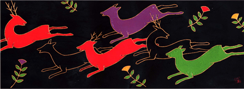 | 「古代彷彿・群鹿U」2013年 漆絵 33.3×12.1cm |