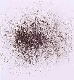4年前の楓画廊での個展で見たsoundと題された大きな銅版画の印象は強い。白い舞台で千人の舞踏家が、一斉にソロで踊り始めたようなざわめき。地に身を沈め、包むように触れてくるものを通して、見えないものの中に潜むものに耳を傾けていく。そんな状態、瞬間が、絵の姿で在る。