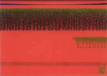 越後の豊かな自然の中で育った夢が作者のモノ作りをかきたてる原点なのだろうか。漆というやっかいな工芸素材を使い、幾何学的に塗り込んだ中に点影を施し、色うるしを象嵌し研ぎを繰り返し作品が展開される。それは自らの意識を技術と感性により昇華させたものといえる。「根来―風景」はそのように原点から生まれた心象を、緻密な仕事と大胆な構図配色により仕上げられている。まさしく研ぎ澄まされ洗練されているが、見る人にとってはなにか懐かしさすら感じることができる作品だ。