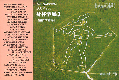 「身体学展/危険な境界」(2000年2月15日〜3月12日、新潟市・アトリエ我廊)は県内30人の現代美術作家が同一テーマで挑んだ競作展。「身体とは」の解釈や表現をめぐって多様な世界が展観されていた。しかし、全体的な印象として残るのは、「危険」というよりはむしろ「安全」な境界といったところ。作家のテーマに対する取り組み方の姿勢の違いということがまず気になった。