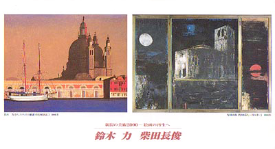 「新潟の美術2000/鈴木力・柴田長俊」(2000年3月1日〜20日、新潟市・県民会館ギャラリー)は広い空間での二人展で実にゆったりと展観できた。回顧形式ということもあり両名とも代表的な大作ばかりが並んでいたが、とりわけ心打たれたのは、鈴木の金泥、柴田の月(または太陽)の用い方に象徴される近作の画境。これらはまさに現在進行形の幸福的出会いを実感させるものだった。