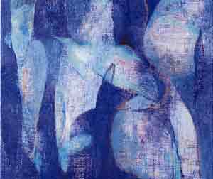 戸川淳子さんの個展はそれらの目に見えるもの、見えないもののニュアンスやドラマを丹念に平面へ置き換えたものだ。そして絵画に女性的なるものと男性的なるものがあるとするなら、これはまさに女性のエロティシズムではないか。