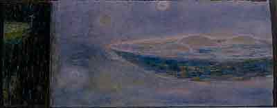 | 「夜間飛行」 岩彩、和紙 42.2×110.0B 2002年 |