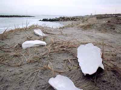 「浮遊するかたち」と題された作品群は、ごく淡い薄紫の肌に柔らかなオレンジ色が滲むように浮かんでいる。形は有機的で、どこか生き物の骨、それも海岸に流れついた大気に白く晒された骨に見えてくる。決して不気味なわけではない。個性的な形でありながら奇を衒った印象でもない。題名の通り、ふわふわと風に舞っていきそうな軽やかで繊細な美しさだ。