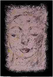 大正時代の棟割り長屋の2階に一人住み、定職についたことがなく、新聞配達の月収5万円のアルバイトだけで(今はこの仕事もない)ひたすら描き続けてきた人らしい。11年前の島田氏との運命的な出会いまで、49年間どこにも発表されないままのグワッシュ(水彩絵の具の一種)の小品は700点にも及んだ。そして祈りを込めた女神たちを描いた初個展はまったくの無名にもかかわらず完売となった。