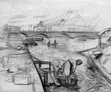 佐藤は実行した。通勤の行き帰りや休日に町の一角に立ち、そこに見えるものを描き続ける。彼が見たのは路地を出た先の共同水道で水仕事をする女、町工場、やはり荒い物をする人のいる信濃川縁、万代橋下の家など記録写真や絵はがきが決して映し出さない、庶民の生活圏の光景が、ひたむきな筆致で紙に掬い取られ、残された。