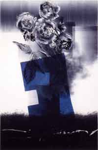 一般的にこのタイプの版画はストロークなどを多用し、偶然性を期待したものが多く見られるのだが、小春作品はバラの花が繊細にしかも象徴的に表現されており、ある種の気品を漂わせている。