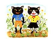 キャットテールの紅い花を踏みつけてほくそ笑む猫。猫のツメのような月がかかる夜ひっそりと歩む猫。しなやかな肢体の魅惑的な猫。内から輝く猫。擬人化された猫。擬きのこ化(?)された猫。黒いサイコロ状の箱にしっぽと目をつけて、それだけでちゃんと猫なんだもの。ああ、愛すべき猫たち。