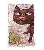 そんな猫好きにはたまらない「猫猫展・1」が2会場で同時開催される。出品作家は、浅見陽子、大久保千秋、菅野由貴子、佐野昌子、速水信子、堀葉月、本望マサ子、皆川良一、山田ナツミ、渡邊利馗の10人。セラミック粘土あり木版あり、水彩、ガラス絵、陶、アクリル等々、素材や表現技法はまさに十人十色。共通しているのは、モチーフが猫ということ。
