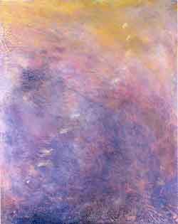 小林久子はニューヨークに在住するカラーフィールドのアーティストです。随分早くから、その早熟な資質は注目されていました。多感な世代に、ちょうどウーマンリブが賛美された時代と合致して、いち早く自立した制作意識をキャンバス上につくり上げたのも小林久子でした。作品一面に流れる色彩の波は、知ってか知らずか東洋の深いイデアが内包されているのが彼女の作品の特徴ともいえます。